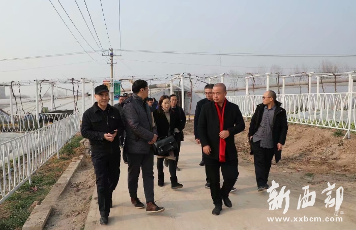 陜西蓬騰農(nóng)產(chǎn)品有限公司總經(jīng)理郭小鵬(前右一)陪同來賓參觀