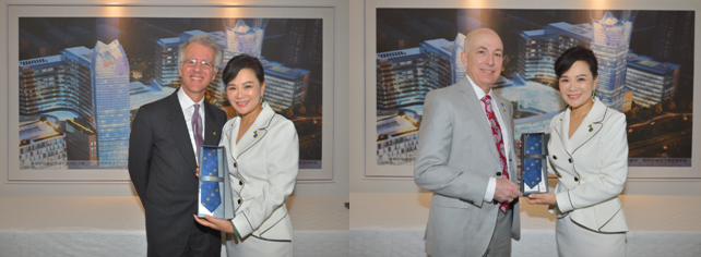 (周建玲女士為專家們送上由約翰霍普金斯和中國西北國際醫(yī)療中心共同設(shè)計(jì)的領(lǐng)帶)