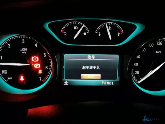 車主熄火后,又重新啟動(dòng)車輛,這時(shí)儀表盤顯示“剎車液不足”和“stabilitrak”(穩(wěn)定循跡控制系統(tǒng))故障。直到此時(shí),劉先生也沒往汽車質(zhì)量問題方面想。