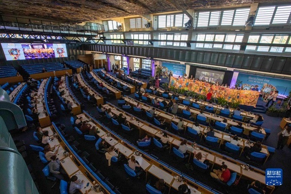 這是10月14日在位于意大利羅馬的聯(lián)合國(guó)糧食及農(nóng)業(yè)組織(糧農(nóng)組織)總部拍攝的活動(dòng)現(xiàn)場(chǎng)。新華社發(fā)(聯(lián)合國(guó)糧食及農(nóng)業(yè)組織供圖)