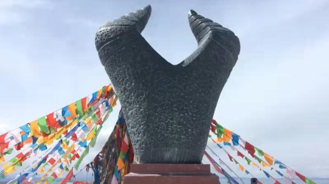 兩湖之間的措日尕則山頂上,建有著名的黃河源牛頭紀(jì)念碑,這里一向是旅游者必到的“打卡點(diǎn)”。