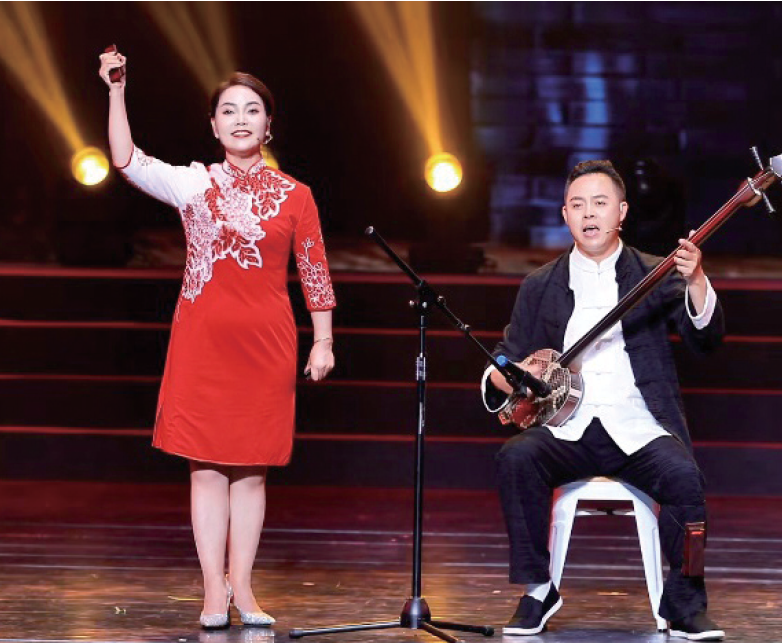 ▲熊竹英和搭檔李樹芹表演《說唱人大七十年》