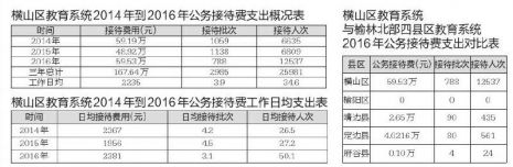 張先生說,他向紀委實名舉報時,橫山區(qū)政府尚未公布橫山區(qū)教育系統(tǒng)2016年的公務(wù)接待費,近日該數(shù)據(jù)才公布,為59.53萬元,接待批次為788批次,接待人次為12537人次,日均接待50.1人次,較上年48.92萬元增加21.68%。