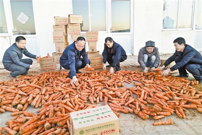神木郵政分公司職工幫助農(nóng)戶將胡蘿卜裝箱