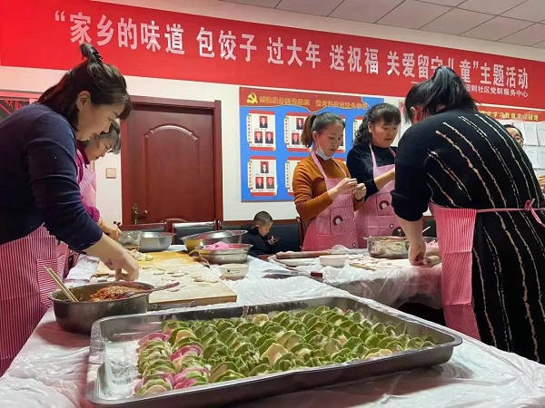 楊園則社區(qū)包餃子過大年關(guān)愛留守兒童