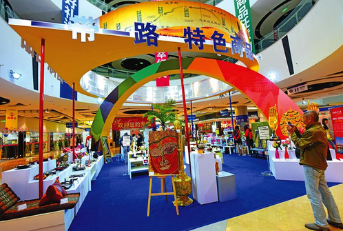 6月5日,在2017絲博會(huì)暨第21屆西洽會(huì)華南城分會(huì)場(chǎng),“一帶一路特色商品展”琳瑯滿目,受到市民、客商青睞。本報(bào)記者 袁景智攝