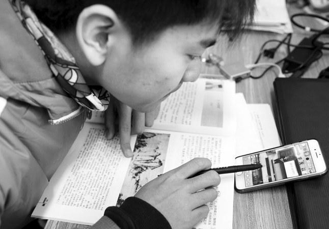 26中的語文老師用手機(jī)直播授課 本報(bào)記者沈繼軍攝