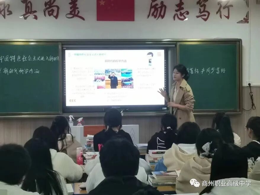 汪慧老師執(zhí)教的《中國特色社會(huì)主義進(jìn)入新時(shí)代》一課,通過播放短視頻《走進(jìn)新時(shí)代》引入本節(jié)主題。課堂上,應(yīng)用多媒體視頻、圖片等直觀的教學(xué)手段以及靈活多變的教學(xué)方法,讓學(xué)生感受到了新時(shí)代的變化以及取得的一系列成就,提高了學(xué)生的學(xué)習(xí)興趣,激發(fā)學(xué)生的民族自豪感。