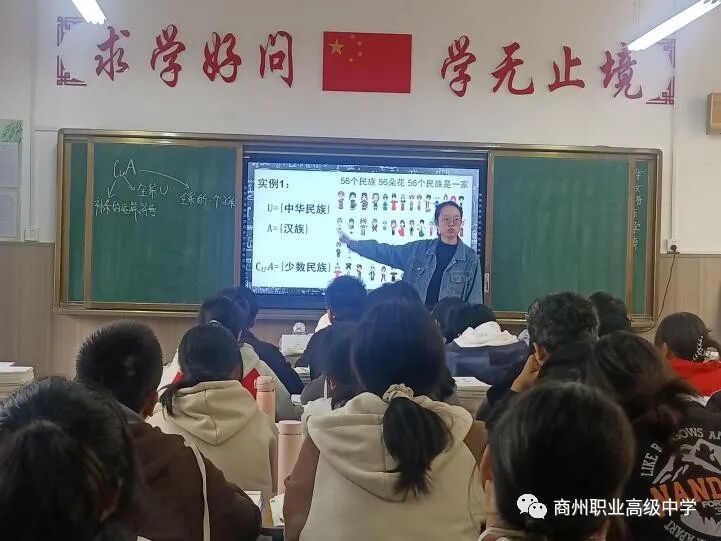 高聰老師執(zhí)教的《集合的運(yùn)算—補(bǔ)集》一課,首先帶領(lǐng)同學(xué)們回顧了上節(jié)課的知識(shí)點(diǎn),并由此結(jié)合生活實(shí)例引出本節(jié)課要講授的內(nèi)容。課堂化繁為簡,層層遞進(jìn),教學(xué)目標(biāo)明確。除了向?qū)W生傳授知識(shí),還通過事例對(duì)學(xué)生進(jìn)行德育培養(yǎng),幫助學(xué)生成為德智體美全面發(fā)展的社會(huì)主義建設(shè)者和接班人。