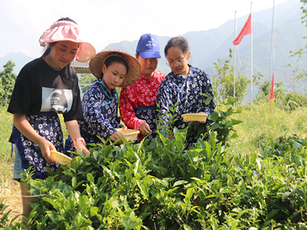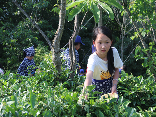 采摘晚茶,學(xué)習(xí)別樣文化。同學(xué)們換了采茶服,排隊走到茶園,基地的負(fù)責(zé)人親自上陣教同學(xué)們采茶。她告訴同學(xué)們,“茶園建好了才能采茶,采茶后要把茶葉放涼,挑揀后才能制茶,制茶就有上十道工序。由于時間氣溫關(guān)系今天主要學(xué)習(xí)采茶?,F(xiàn)在采的茶已經(jīng)是晚茶,大家在茶樹上找到葉芽掐采。”簡單學(xué)習(xí)采茶要領(lǐng)后,同學(xué)們就急著鉆進茶園實踐自己采茶技術(shù)去了。