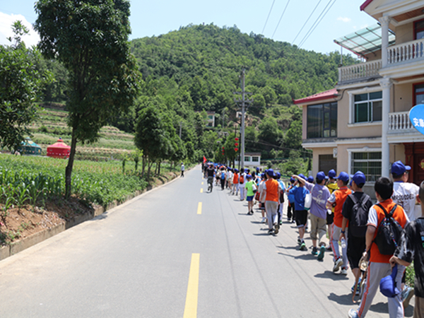 田間拉練,走進自然懷抱。團建活動后,所有師生從廣場出發(fā),徒步向心海山莊實踐研學(xué)基地行進,完成近3公里的拉練活動。藍(lán)天、白云、青山、驕陽、田間的綠,鳥兒的啼叫、同學(xué)的笑聲、田間的花香、泥土的氣息,讓人格外放松。