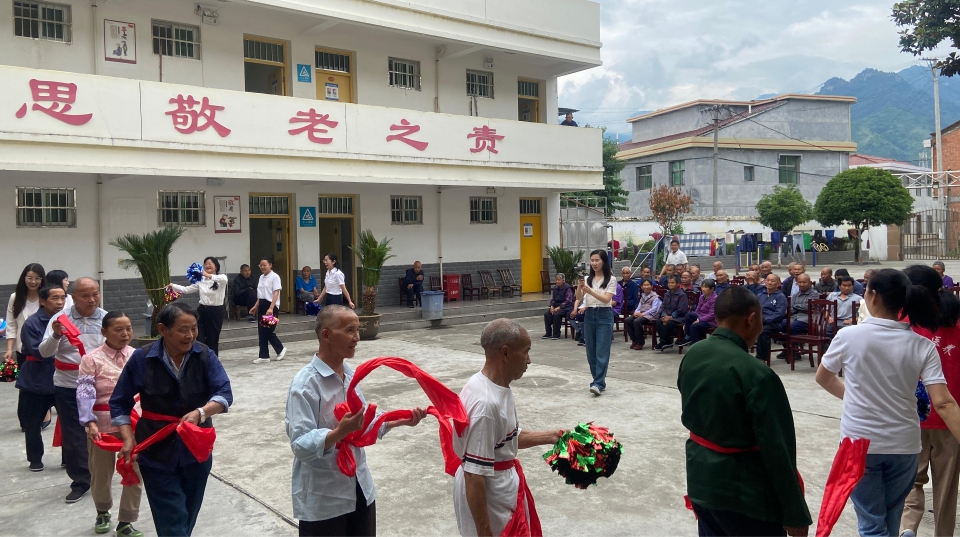 活動(dòng)最后開(kāi)展“扭秧歌”、“套圈圈”小游戲,合唱《沒(méi)有共產(chǎn)黨就沒(méi)有新中國(guó)》等歌曲,黨員干部和老人們熱情高漲、“火”力全開(kāi),讓平日寧?kù)o的敬老院增添熱鬧溫馨的節(jié)日氛圍。游戲結(jié)束后,黨員干部分工協(xié)作為老人們打掃衛(wèi)生、整理內(nèi)務(wù),共話(huà)家常,現(xiàn)場(chǎng)氣氛祥和、其樂(lè)融融。