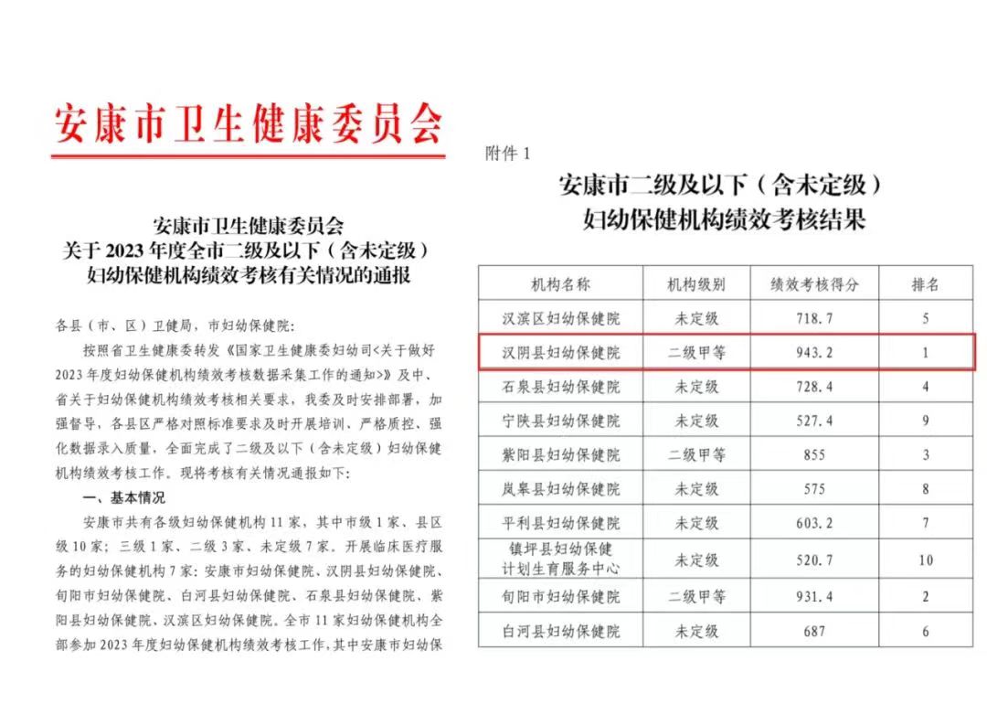安康:漢陰縣婦幼保健院在安康市二級(jí)婦幼保健機(jī)構(gòu)績(jī)效考核中蟬聯(lián)第一