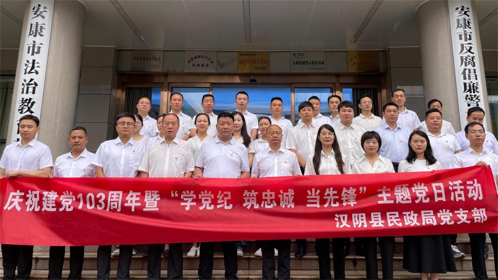 新西部網(wǎng)訊(通訊員楊家豪)為慶祝中國共產(chǎn)黨成立103周年,提升廉潔自律意識,引領(lǐng)全體黨員干部立足崗位擔(dān)當(dāng)奉獻(xiàn)。7月1日,漢陰縣民政局赴漢濱區(qū)反腐倡廉警示教育基地、雙乳鎮(zhèn)廉潔文化教育基地開展慶祝中國共產(chǎn)黨成立103周年暨“學(xué)黨紀(jì)、筑忠誠、當(dāng)先鋒”主題黨日活動。