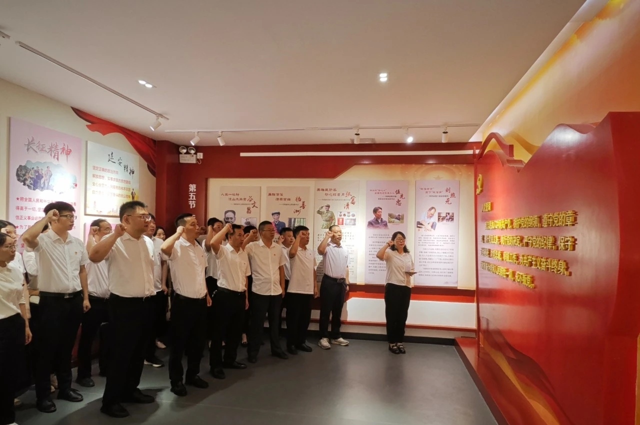 展館內(nèi),工作人員帶領(lǐng)全體黨員干部依次參觀了序廳、正廳、尾廳三個(gè)展廳,大家認(rèn)真聆聽講解員講解,通過(guò)觀看圖文展板、多媒體互動(dòng)體驗(yàn)等形式,參觀學(xué)習(xí)了紀(jì)律法規(guī)、正反典型、杜氏家規(guī)等內(nèi)容。每到一處,大家都認(rèn)真觀看,接受廉政文化教育。全體黨員干部還面對(duì)鮮紅的黨旗莊嚴(yán)宣誓,重溫入黨誓詞,表達(dá)了為黨的事業(yè)奮斗終身的決心。