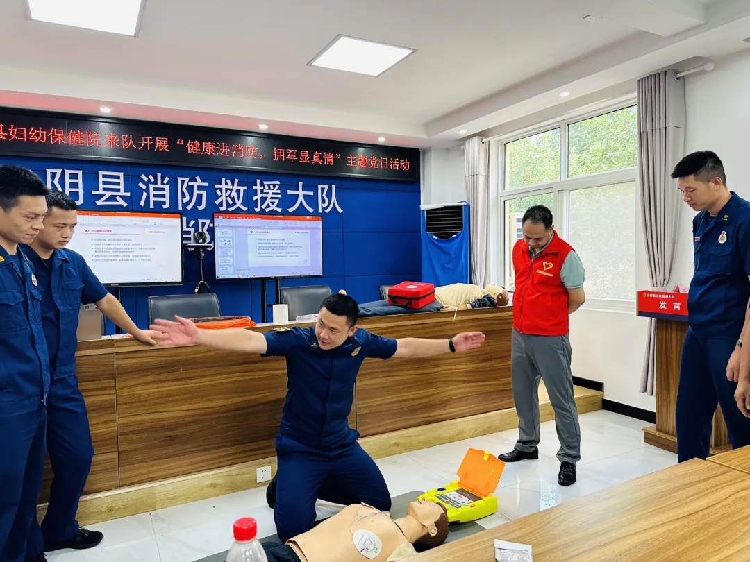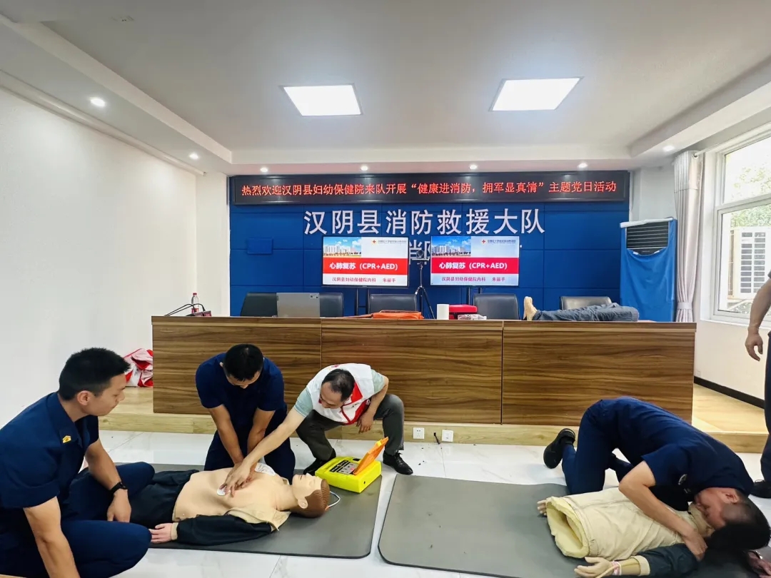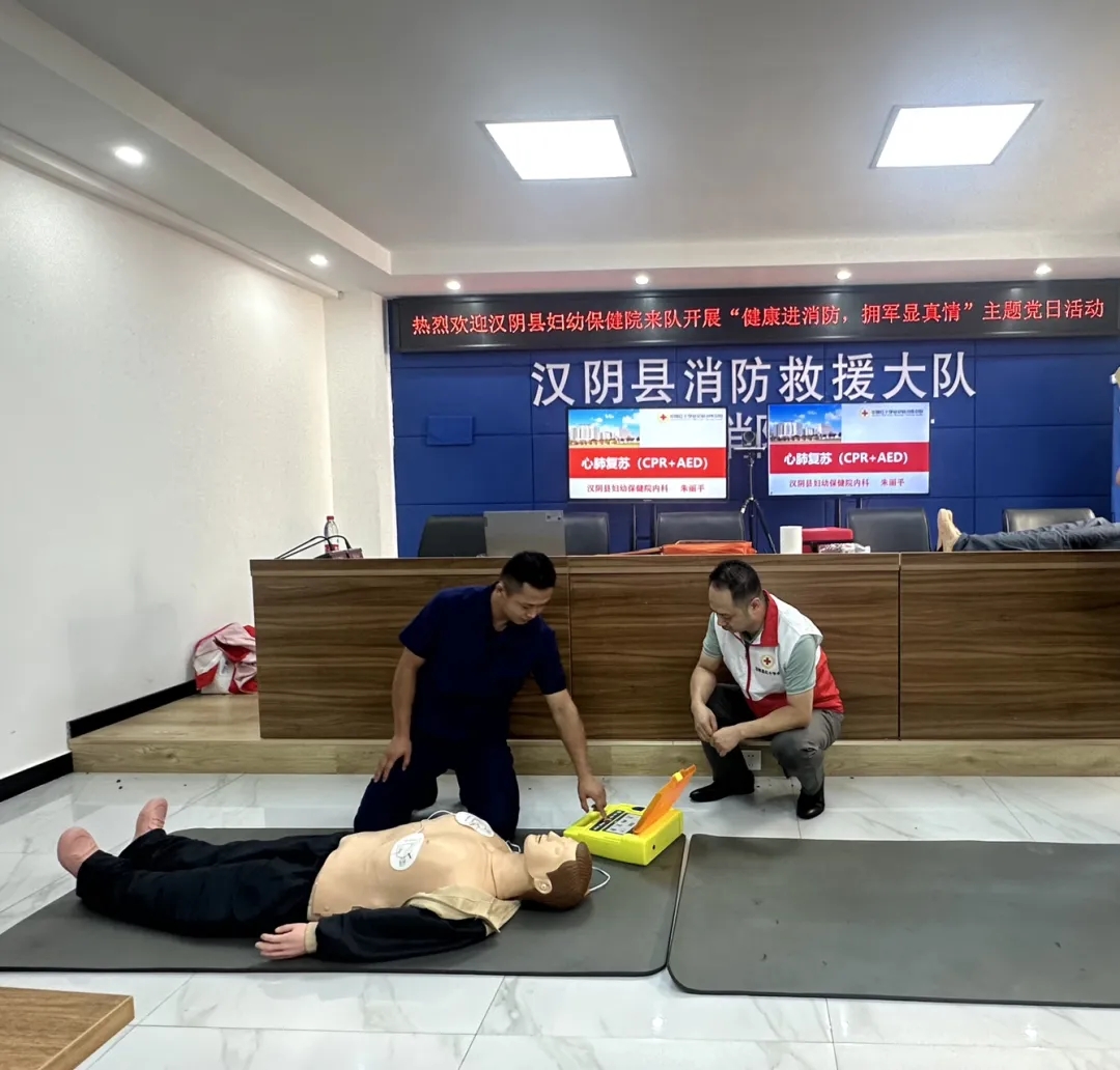 漢陰縣婦幼保健院內(nèi)科主任對(duì)消防員們進(jìn)行“成人徒手心肺復(fù)蘇”急救知識(shí)技能培訓(xùn),從判斷意識(shí)、呼叫救援、正確的按壓位置和頻率深度,每一個(gè)細(xì)節(jié)、原理、操作要點(diǎn)都進(jìn)行詳細(xì)闡述和示范,并對(duì)自動(dòng)除顫儀(AED )的操作方法進(jìn)行講解。示教后,現(xiàn)場(chǎng)的消防員逐一進(jìn)行了實(shí)操,內(nèi)科主任現(xiàn)場(chǎng)指導(dǎo)糾正。疼痛科醫(yī)生圍繞常見(jiàn)肌肉扭傷、拉傷、運(yùn)動(dòng)性外傷、關(guān)節(jié)損傷等疾病為消防員們進(jìn)行健康知識(shí)科普,并根據(jù)每個(gè)人的身體狀況給予膳食、用藥、運(yùn)動(dòng)和科學(xué)保健等方面的健康指導(dǎo)。