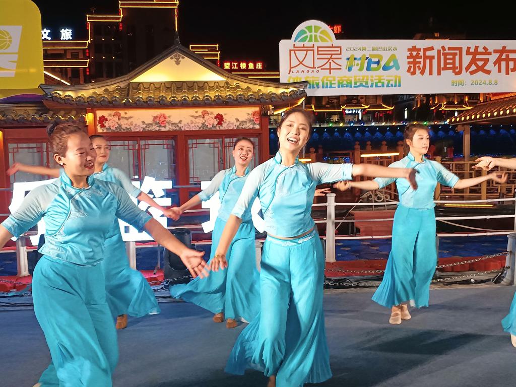 巍巍巴山,清清嵐河。傍晚時(shí)分的嵐皋縣城,霓虹閃耀、滿目絢爛,宛如一幅流光溢彩的山水畫卷。伴隨著一曲歡快的舞蹈《出水芙蓉》,新聞發(fā)布會(huì)正式拉開序幕。嵐皋縣委常委、常務(wù)副縣長(zhǎng)王誠(chéng)介紹了第二屆巴山漢水“陜西村 BA”體旅促商貿(mào)活動(dòng)整體情況,三名推薦官分別介紹了賽事賽程、景區(qū)優(yōu)惠政策、商貿(mào)展銷等專項(xiàng)工作安排情況。賽事演藝總導(dǎo)演侯鴻霖,介紹了賽事期間文藝表演及特色亮點(diǎn)。
