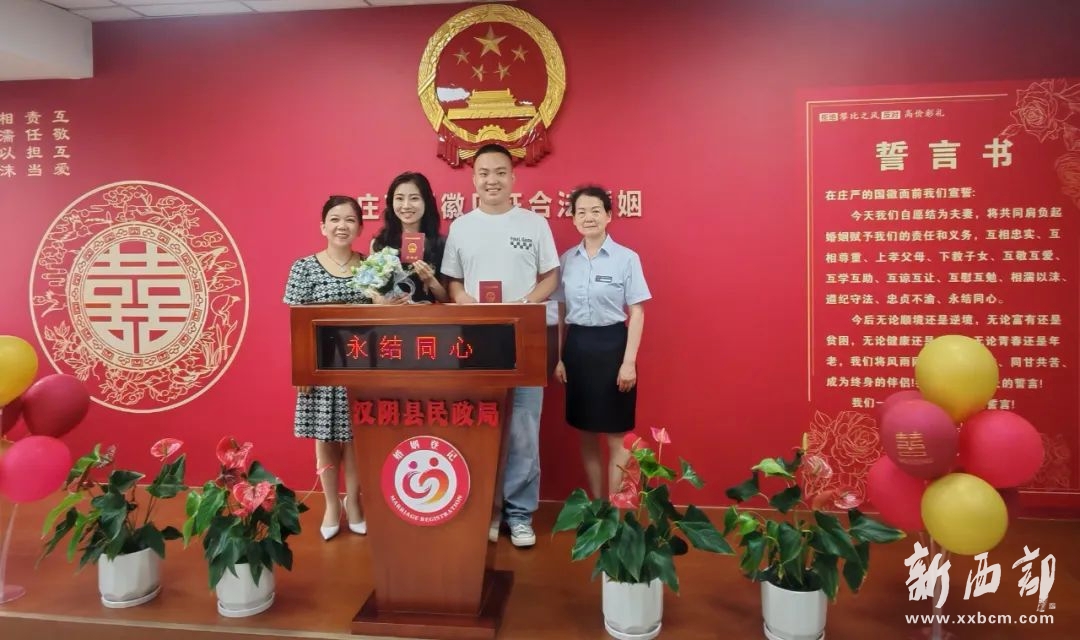 新西部網(wǎng)訊(通訊員楊俊)農(nóng)歷七月初七,俗稱“七夕”,是中華民間傳統(tǒng)的愛情佳節(jié),被賦予了美麗的愛情傳說,不少情侶紛紛期盼在這一天與心愛之人領“紅本本”。七夕之日逢周末,為響應國家提倡優(yōu)生優(yōu)育號召,漢陰縣行政審批局、漢陰縣民政局及漢陰縣婦幼保健院攜手“為愛加班”辦理結婚登記業(yè)務。