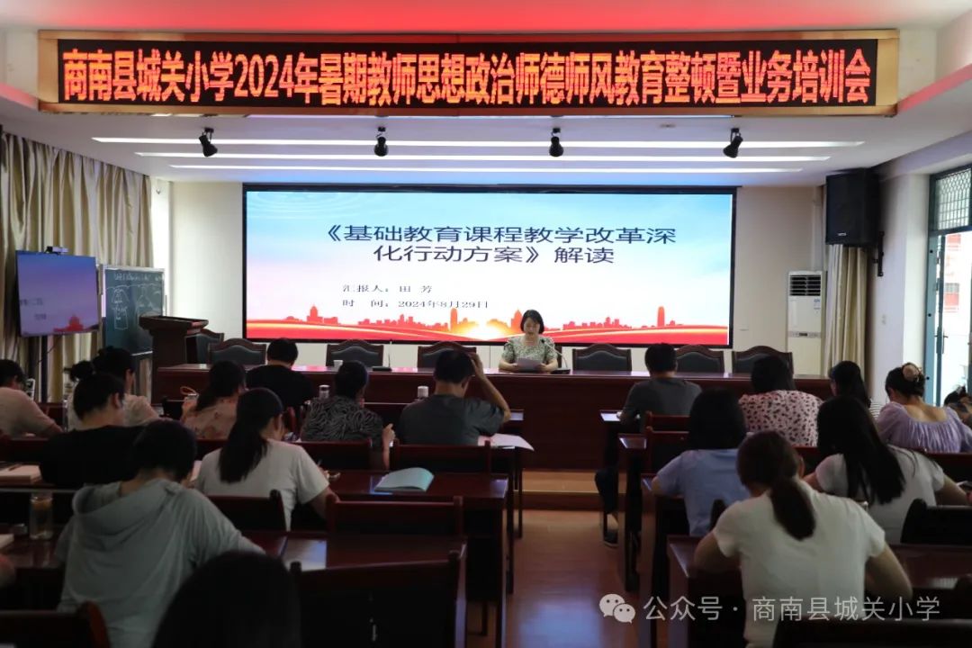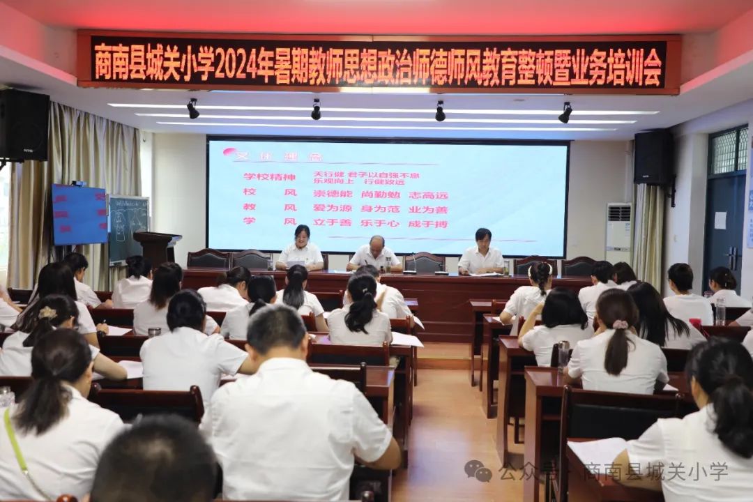 云天收夏色,共赴秋實(shí)約。為深入開展“弘揚(yáng)踐行教育家精神行動年”活動,切實(shí)加強(qiáng)師德師風(fēng)建設(shè),全面提升教書育人能力,根據(jù)商南縣教育和體育局安排,8月25日至30日商南縣城關(guān)小學(xué)開展了為期六天的教師思想政治師德師風(fēng)整頓及業(yè)務(wù)培訓(xùn)活動。