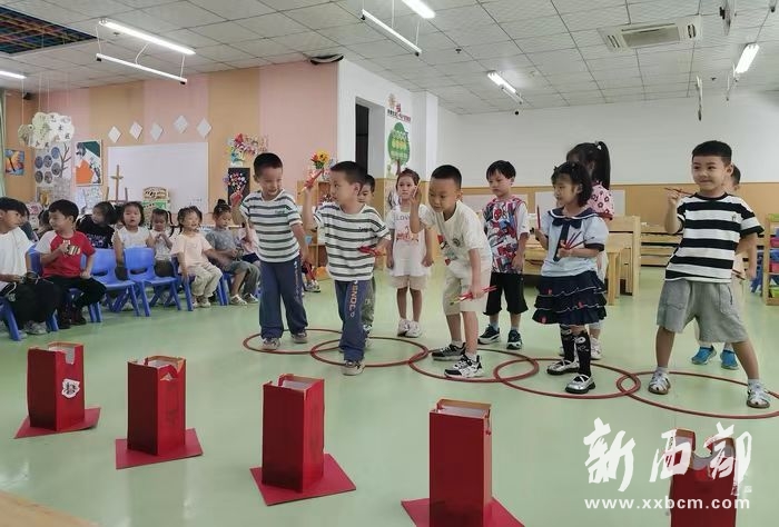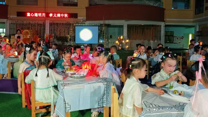 開展中秋游園活動(dòng),孩子們身穿漢服,手持花燈,掛許愿卡,共品月餅,并進(jìn)行趣味投壺、后羿射日、玉兔套圈等趣味游戲,讓孩子們沉浸式體驗(yàn)和了解傳統(tǒng)節(jié)日文化,領(lǐng)略傳統(tǒng)藝術(shù)的風(fēng)姿,傳承民族文化經(jīng)典。