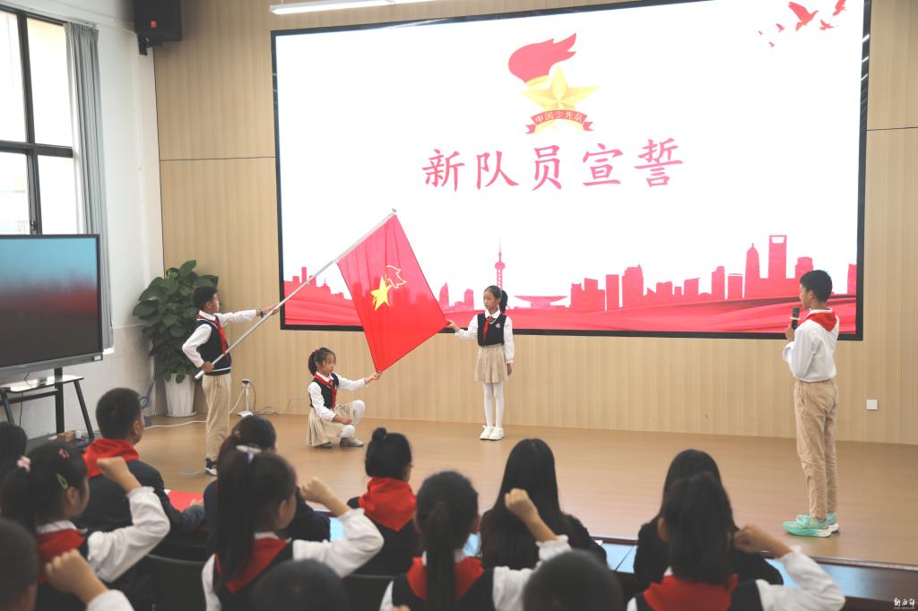 據(jù)了解,在建隊日來臨前夕,二年級各班積極開展隊史教育,遴選準隊員,進一步讓學生了解、熱愛少先隊組織,盡快成為一名合格的少先隊員。在建隊日主題隊會暨納新儀式上,激昂的出旗曲拉開主題隊會帷幕,大隊部輔導員李靜宣布了入隊新隊員名單,老隊員代表為新隊員戴上了鮮艷的紅領(lǐng)巾,在大隊長的帶領(lǐng)下,在場全體少先隊員齊唱少年先鋒隊隊歌,重溫入隊誓詞,并呼號,誓言鏗鏘有力,157名新隊員稚嫩的臉龐上洋溢著無比激動與自豪。新隊員代表作了表態(tài)發(fā)言,表示將會積極踐行入隊誓言,始終聽黨話、跟黨走,從小學先鋒、長大做先鋒,爭當新時代好隊員,為胸前的紅領(lǐng)巾增光添彩,努力成為擔當民族復興大任的時代新人。