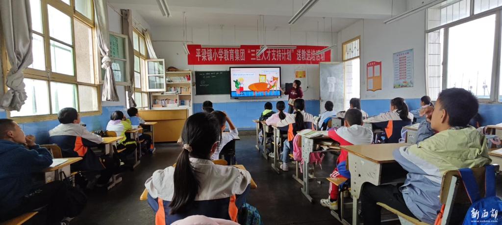 郭丹、賴春萍老師一行7人在簡單的“三區(qū)人才支持計劃”送教送陪啟動儀式后,認真旁聽了高梁小學(xué)青年英語教師吳玉熙上的一節(jié)四年級英語公開課。