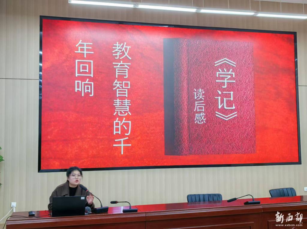 新西部網(wǎng)訊(通訊員陳珠芳)為進(jìn)一步強(qiáng)化廣大教師學(xué)經(jīng)典、用經(jīng)典、傳承經(jīng)典的閱讀成效,促進(jìn)全體教師積淀學(xué)養(yǎng),提升內(nèi)涵,激發(fā)思考,促進(jìn)專業(yè)成長,11月19日,漢陰縣恒達(dá)小學(xué)舉行共讀《學(xué)記》讀書分享會(huì)。