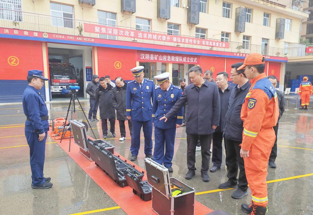 成立儀式上,漢陰縣委常委、縣政府常務(wù)副縣長吳奎做了熱情洋溢的致辭,他指出,漢陰縣礦山應(yīng)急救援大隊的組建成立,是提升應(yīng)急救援能力、建立健全應(yīng)急救援體系的重大舉措。應(yīng)急救援隊伍要認(rèn)真貫徹“人民至上、生命至上”的安全發(fā)展理念,在加強隊伍建設(shè)的基礎(chǔ)上,進一步強化業(yè)務(wù)培訓(xùn)和實戰(zhàn)演練,不斷提高實戰(zhàn)能力和水平,打造一支政治過硬、聽黨指揮、服從命令的戰(zhàn)斗隊伍,真正做到關(guān)鍵時刻“拉得出、沖得上、打得贏”。各級各部門各單位要加強協(xié)作配合,大力支持應(yīng)急救援工作。安康市應(yīng)急管理局局長樂榮和吳奎共同為礦山應(yīng)急救援隊揭牌。吳奎向救援隊授旗,全體隊員面向隊旗進行了莊嚴(yán)宣誓。儀式結(jié)束后,市、縣領(lǐng)導(dǎo)和企業(yè)負(fù)責(zé)人參觀了礦山救援隊裝備和救援隊辦公場所。