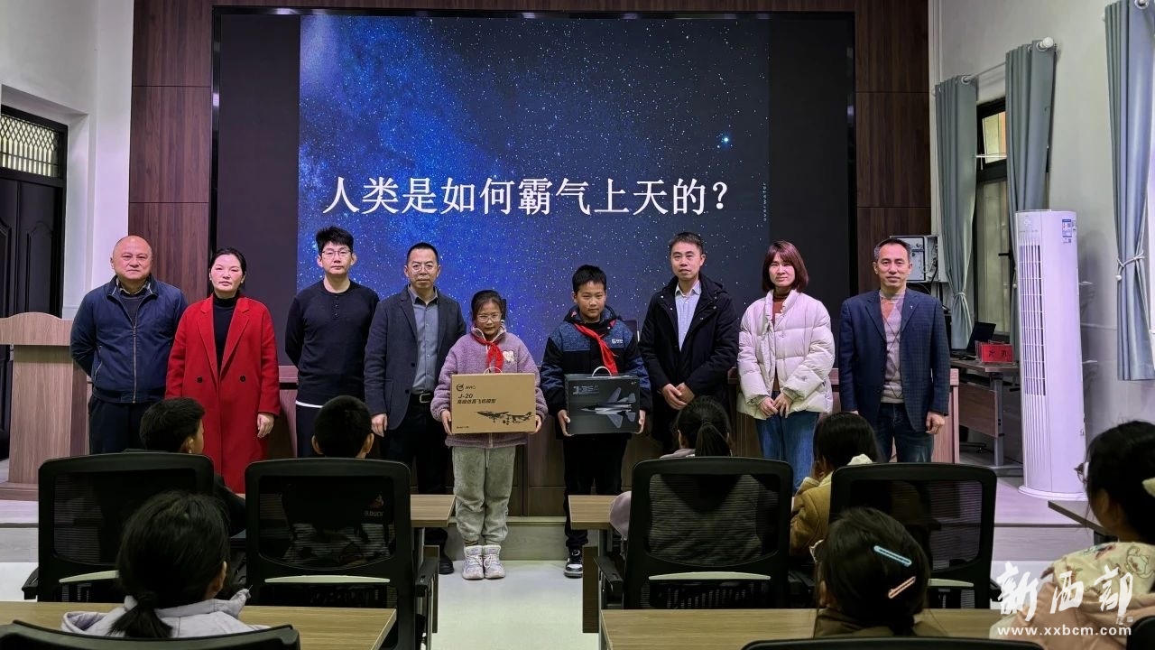 講座結(jié)束后,西安航空學(xué)院為曾家鎮(zhèn)小學(xué)的學(xué)生們贈送了飛機模型。當一架架精致的飛機模型遞到孩子們手中時,他們的臉上洋溢著興奮與喜悅。這些模型不僅是一份禮物,更將成為孩子們心中航空夢想的種子,激勵他們努力學(xué)習,探索藍天奧秘。