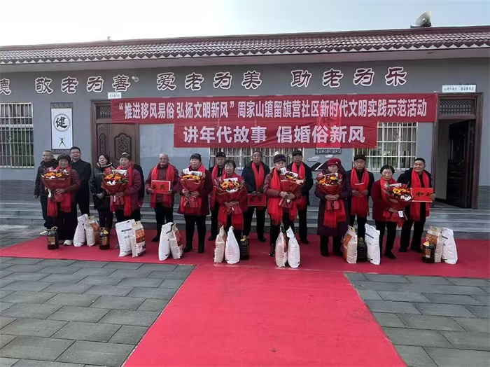 會(huì)后,勉縣新時(shí)代文明實(shí)踐中心聯(lián)合周家山鎮(zhèn)舉辦了“講年代故事·倡婚俗新風(fēng)”移風(fēng)易俗主題宣傳活動(dòng),留旗營(yíng)社區(qū)7對(duì)文明家庭老夫妻分享了各自的婚姻故事、正確婚戀觀和對(duì)新時(shí)代年輕人的希望,社區(qū)紅白理事會(huì)代表向老人們送上了祝福并發(fā)出了倡導(dǎo)婚俗新風(fēng)倡議,勉縣縣委宣傳部、縣民政局、周家山鎮(zhèn)向老人們送去了春聯(lián)、福字、鮮花和生活物資,共同倡樹正確的婚俗觀念,讓文明新風(fēng)潤(rùn)澤千家萬(wàn)戶。