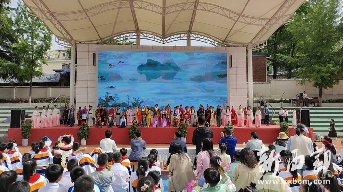 本次展演分年級進(jìn)行,孩子們用真摯熱誠的情感,惟妙惟肖的神態(tài),多元化的呈現(xiàn)方式,傳遞出他們對經(jīng)典文學(xué)的獨特理解和創(chuàng)新表達(dá)。繪本劇《狼大叔的紅燜雞》、詩朗誦《詩韻二十四節(jié)氣》、情景劇串燒《傳統(tǒng)文化 璀璨中華》……一個個創(chuàng)意十足的節(jié)目,既是對經(jīng)典文本的個性化解讀,更是新時代少年精神世界的生動寫照?;顒又?,還對評選出的132名“書香少年”、12名“書香教師”、12個“書香家庭”和“書香班級”進(jìn)行了表揚。