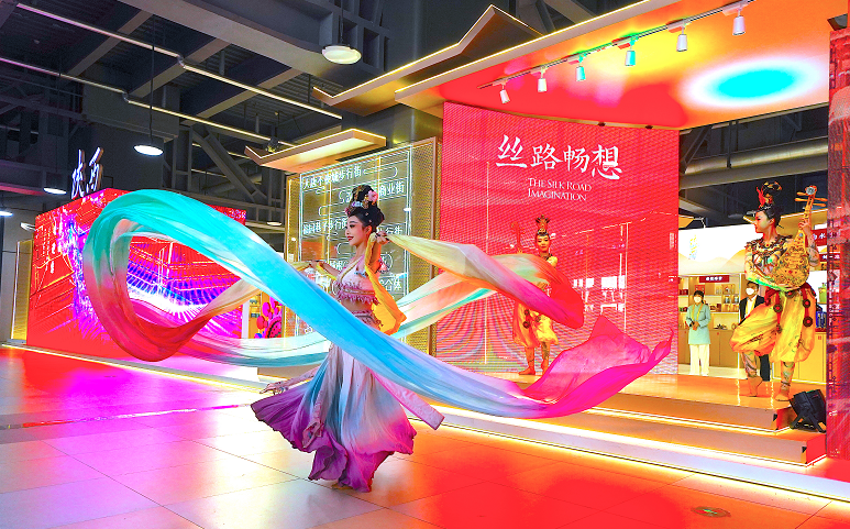 步行街展區(qū)還設(shè)置有演出舞臺(tái),通過古風(fēng)舞蹈及唐仕女互動(dòng)演繹,觀眾可沉浸式互動(dòng),再現(xiàn)漢唐盛世景象、活化歷史記憶、賡續(xù)精神血脈,恭迎八方賓客蒞臨陜西。(記者 楊光)