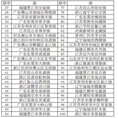 2017全國(guó)綜合實(shí)力千強(qiáng)鎮(zhèn)前100名