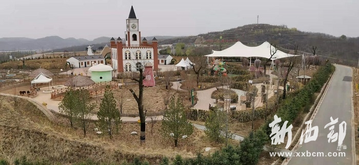 站在南溝村生態(tài)園最高處的觀景臺(tái)俯瞰景區(qū),紅色小樓錯(cuò)落有序、旁邊水庫綠水盈盈、遠(yuǎn)處山峰層層疊疊、成片的蘋果園劃出整齊的曲線,五顏六色的游樂設(shè)施裝點(diǎn)著黃土高原,讓人驚嘆山溝溝里竟然還有這樣養(yǎng)眼的好去處。