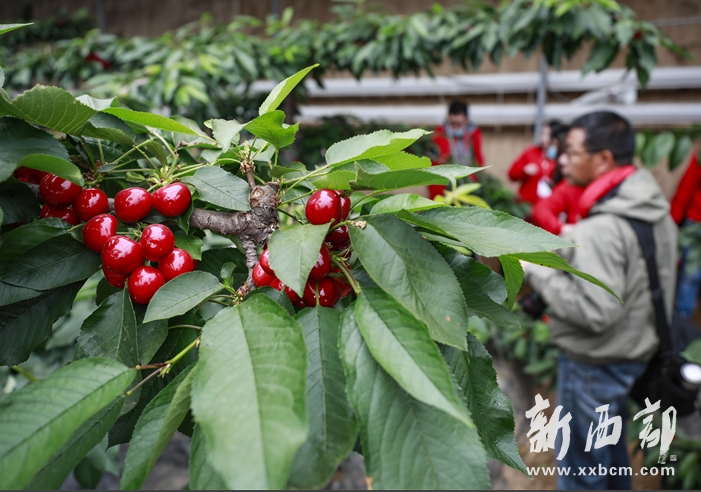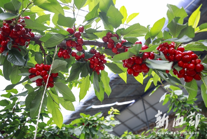 在櫻桃棚內(nèi),紅色的櫻桃一簇一簇簇?fù)碓跇渖希诰G油油的樹葉間顯得嬌艷欲滴。路寶告訴記者,子長的櫻桃可以趕在其他產(chǎn)地的櫻桃未上市前售賣,因此市場行情好,加上保存期長,適合現(xiàn)代物流的發(fā)展,從而產(chǎn)生了比較好的收益?!拔覀冞@個櫻桃可以在其他櫻桃還沒有上市的時候,借助現(xiàn)代物流賣到全國各地,甚至可以賣到櫻桃的主產(chǎn)區(qū)去?!?/p>