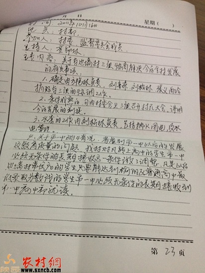 圖為邊墻村村委會(huì)會(huì)議記錄