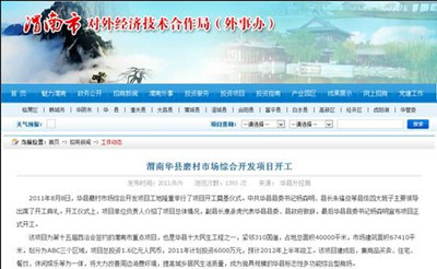 項目開工時華縣政府領導奠基儀式網(wǎng)站截圖
