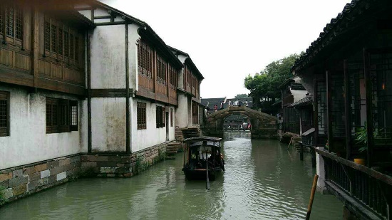 八月九號的下午四時,天空中飄著蒙蒙的細雨,微風習習輕拂,給飽受一路旅途顛簸的我們,帶來了神清氣爽的好心情,也給將要游覽的水鄉(xiāng)烏鎮(zhèn),增添了幾分神秘的色彩!