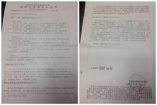 白水縣交警大隊(duì)出具的第一份事故認(rèn)定書
