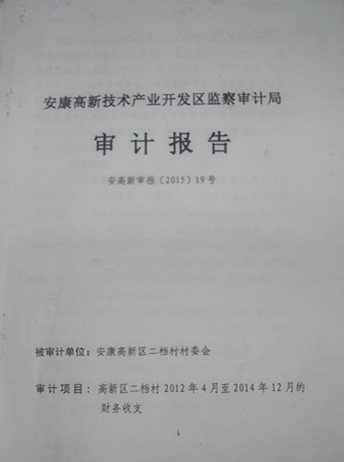 在記者獲悉的一份由安康高新技術(shù)產(chǎn)業(yè)開發(fā)區(qū)監(jiān)察審計(jì)局的審計(jì)報(bào)告【安高新審報(bào)(2015)19號(hào)】里看到,該審核報(bào)告審計(jì)了二檔村2012年4月到2014年12月的財(cái)務(wù)收支情況,該報(bào)告第五部分認(rèn)為二檔村一是未按規(guī)定編制資產(chǎn)負(fù)債表,未建立固定資產(chǎn)賬,未指定專人負(fù)責(zé)對(duì)報(bào)賬單據(jù)進(jìn)行審核,未對(duì)記賬憑證進(jìn)行復(fù)核,記賬憑證要素不全;二是會(huì)計(jì)記賬憑證無(wú)原始單據(jù)支撐,報(bào)賬憑證簽字手續(xù)不全;三是賬務(wù)處理錯(cuò)誤;四是往來(lái)款項(xiàng)長(zhǎng)期掛賬不清理。