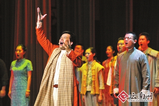 ?連日來,由上海歌劇院打造的原創(chuàng)音樂劇《國之當歌》在昆明抗戰(zhàn)勝利紀念堂舉行公益巡演,場場爆滿,每天都吸引了近千名觀眾。