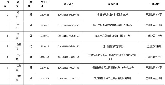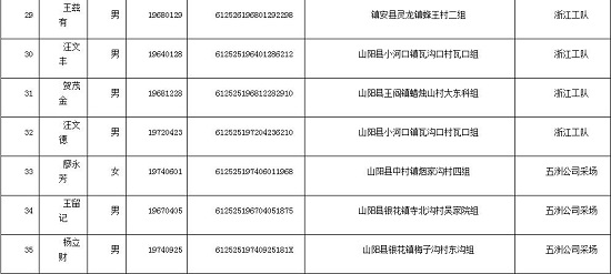 山陽(yáng)縣“8·12”山體滑坡失蹤人員名單