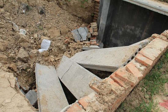 村民介紹說,這是上邊今年實(shí)施的“集雨水窖”工程,由農(nóng)業(yè)局實(shí)施;也有人說是“母親水窖”工程,由婦聯(lián)牽頭實(shí)施,村上干部剛動(dòng)員時(shí),村民就擔(dān)心跟過去建的沼氣池工程一樣,有頭無尾,有投入沒產(chǎn)出,更沒效果。經(jīng)過動(dòng)員,終于有人愿意利用三邊地修了,沒想?yún)s修成了報(bào)廢工程。既然都能倒塌,那漏水滲水毀壞路渠耕地,甚至房屋的事更說不定了。工程隊(duì)究竟偷工減料多少,怎么能這樣干工程,這其中的貓膩就更難令群眾想象了。