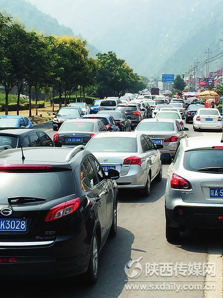 早上九時整,環(huán)山路上的灃峪口盤道就開始出現(xiàn)游客堵車現(xiàn)象。首尾相連、看不到頭的車流在210國道上緩慢行進(jìn),隨著時間推移、溫度升高,時不時可以看到一些私家車主暴躁地從車流中駛出,或掉頭離開,或快速逆行數(shù)十米后在一片罵聲中重新插進(jìn)隊列,驚險異常。
