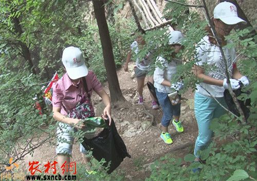 參加“美麗陜西鄉(xiāng)村行”的人員,沿著石鼓山景區(qū)一條陡峭的小路上山撿拾沿途垃圾。只見他們或用工具或徒手撿拾,拿著塑料袋在山間小路上撿拾煙盒、衛(wèi)生紙、零食包裝袋、紙盒等垃圾。盡管山路險峻,但絲毫沒有阻擋他們美化石鼓山景區(qū)環(huán)境的腳步。四個多小時后,石鼓山景區(qū)這條山間小路被清理的干干凈凈,十幾個垃圾袋被裝得滿滿的,大家也都累得滿頭大汗。