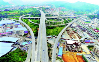 貴州省實(shí)施高速公路建設(shè)三年會(huì)戰(zhàn)以來(lái),總投資近4000億元,新建成高速公路2500公里以上,實(shí)現(xiàn)通車(chē)?yán)锍?100公里以上。圖為貴陽(yáng)環(huán)城高速牛郎關(guān)互通。(謝強(qiáng))