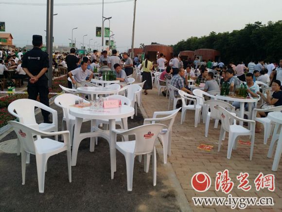 28日下午7時(shí),青啤節(jié)臨設(shè)大門口拉著警戒線,進(jìn)入者需向工作人員說明自己是哪個(gè)單位的,記者尾隨一市級部門人員得以進(jìn)門。“為啥進(jìn)去要問哪個(gè)單位?”答復(fù)是(活動(dòng))還沒開始。進(jìn)入后發(fā)現(xiàn)現(xiàn)場已聚集千人,好多人正在就餐。20分鐘內(nèi),記者無法就坐,空桌位要么放著預(yù)定的紙牌,要么走近即有工作人員告知已預(yù)訂??课枧_最近位置尚有大量空座,記者仍被阻止,同樣原因,座位被管委會預(yù)定了。