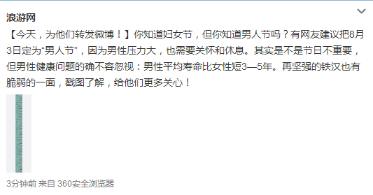 浪游網(wǎng)【8月3日“男人節(jié)”】