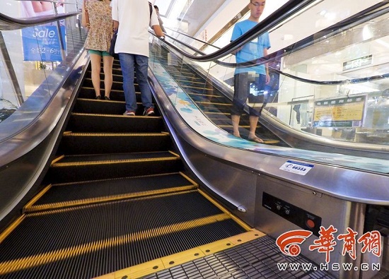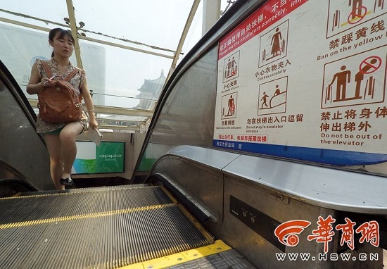 昨日下午,華商報(bào)記者到陜西省中醫(yī)醫(yī)院、西安市中心醫(yī)院、交大二附院以及地鐵1號(hào)線北大街站、2號(hào)線鐘樓站實(shí)地查看了19部自動(dòng)扶梯。
