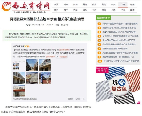 乾縣大楊鎮(zhèn)農(nóng)貿(mào)市場(chǎng)在無任何手續(xù)的情況下拔地而起,未批先建,相關(guān)部門監(jiān)管形同虛設(shè)?試問乾縣政府:依法治國(guó)難道在乾縣只是個(gè)口號(hào)嗎?
